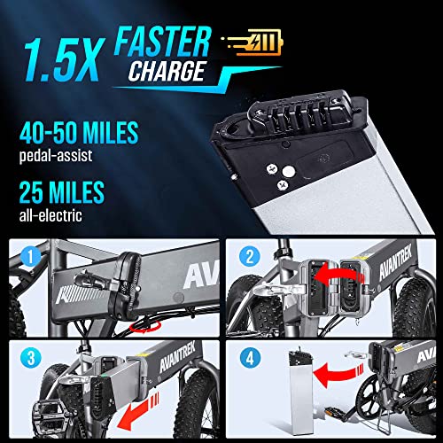 AVANTREK Cybertrack 200 Electric Bike Foldable 20″x4″ Fat Tire Electric Bicycle, 1.5X Faster Charge, 500W Brushless Motor 48V/10Ah Removable Battery, Shimano 7 Speed – Silver