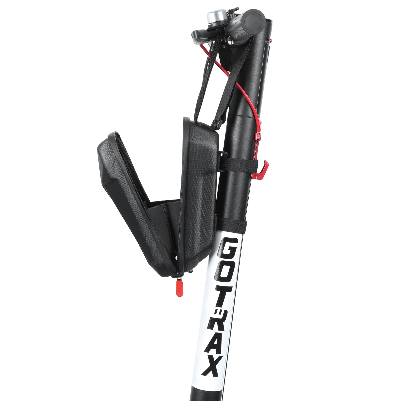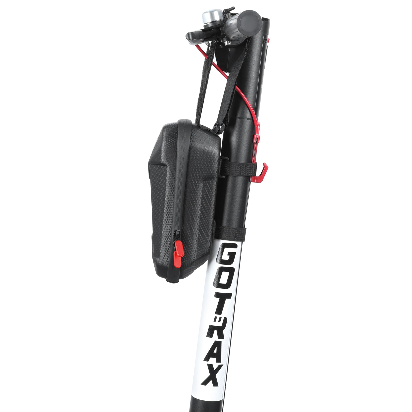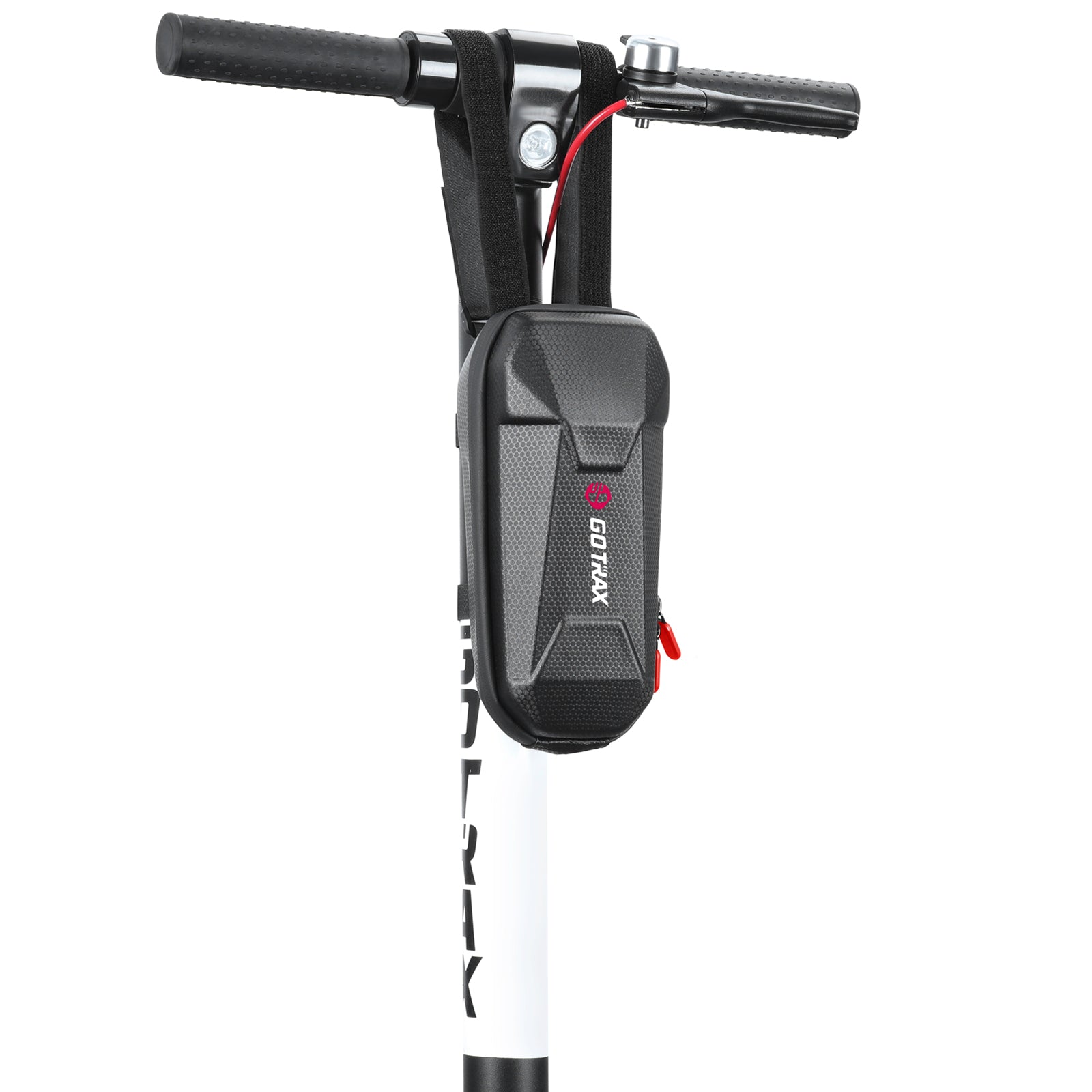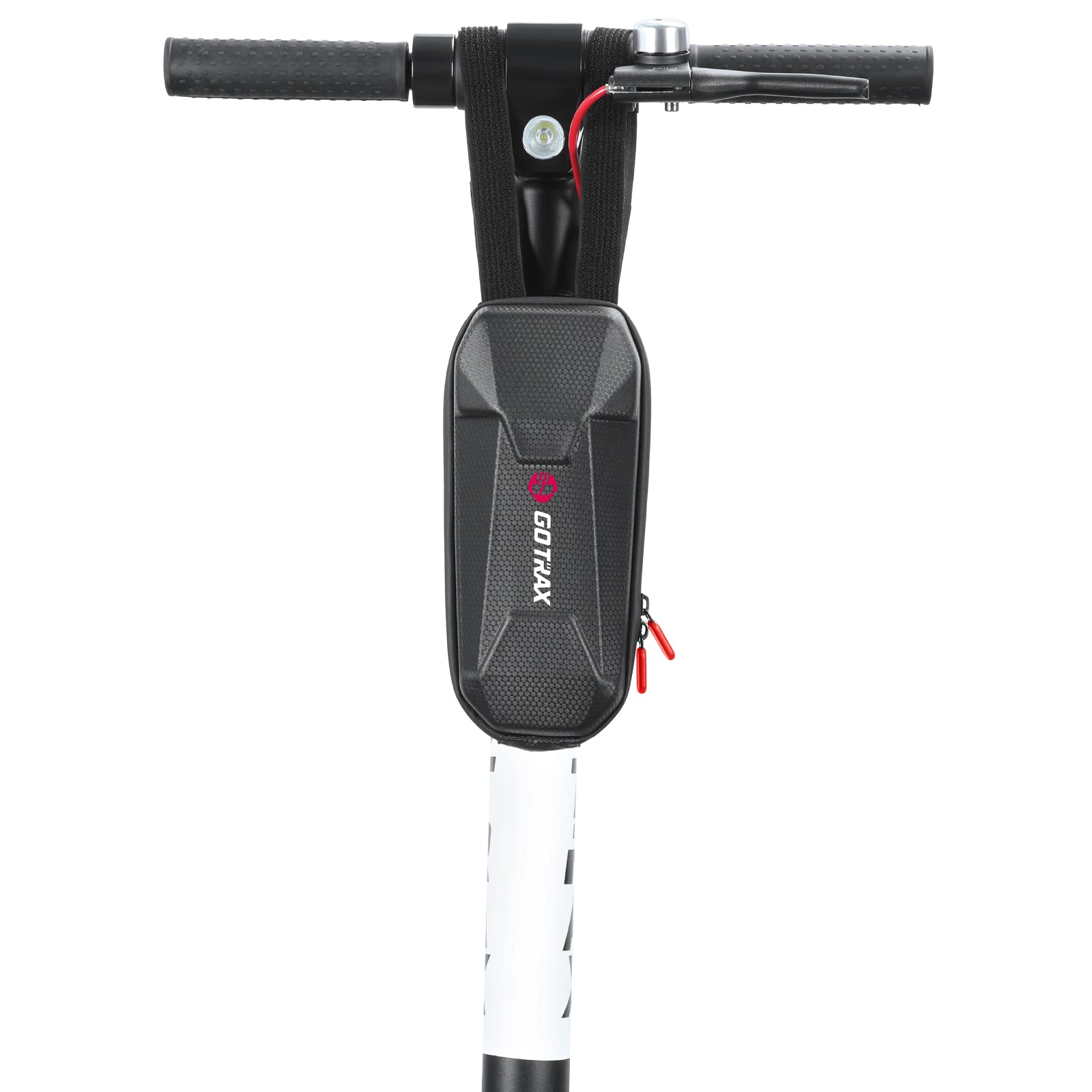 Our electric scooter tiller bag is great for carrying phones, wallets, small toolkits, and other essentials you need for your rides. Secured to the tiller and handlebar assembly with four strong velcro straps!