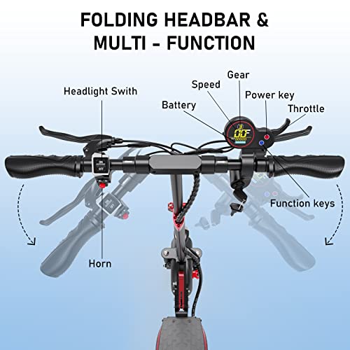 - UNIQUE AND HUMANIZE – The adult electric scooter is equipped with wider foot anti-slip pedal for larger feet support, high lumen head lamp for safe night riding, and clear LED display for relaxing riding.