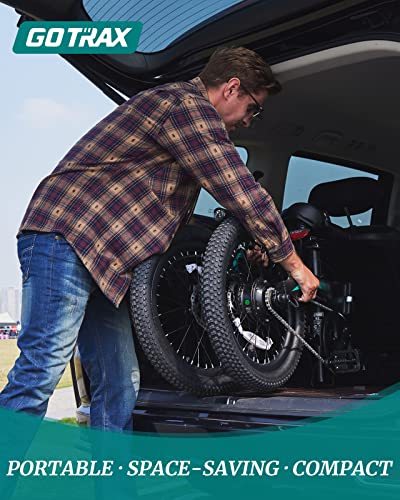 - 【Foldable and Portable Design】GOTRAX’s selection of folding electric bikes make it easy to enjoy the outdoors while still being compact enough for easy portability. You can easily put it in the trunk of your car or take it on the subway to make your commute smooth without traffic jams. And when you’re ready for some outdoor adventures, simply unfold the bike and you’re ready to go. (Folded size:37.4*17.7*27.5inch)