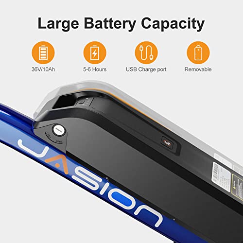 Jasion EB5 Electric Bike for Adults with 360Wh Removable Battery, 40Miles 20MPH Commuting Electric Mountain Bike with 350W Brushless Motor, Shimano 7 Speed, 26″ Tires and Front Fork Suspension