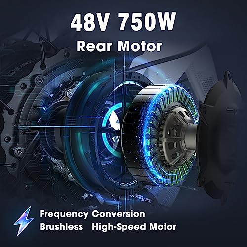 - 【Powerful Performance】- The Electric Bike for Adults features a 750W Brushless Motor and a 48V/12.5Ah Removable High-Capacity Lithium Battery,providing up to 28mph top speed and up to 31miles(with pedal assistance) range per charge,making it suitable for long-distance commuting or outdoor exploration.