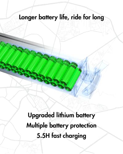 - A Blend of Style and Performance – EA10 e scooter is equipped with an automotive-grade long-lasting battery, which provides enough juice to travel up to 25 miles of range. with a detachable design, so you can easily charge and replace the battery when needed.