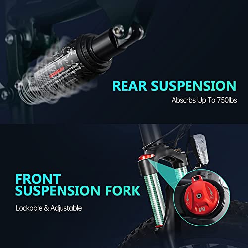 ReAspire Electric Bike for Adult 750W BAFANG Motor Ebike 24 MPH 40 Miles Range, 48V 16Ah Samsung Battery E Bikes, Mountain Beach Electric Bicycle Dual Shock Absorbers Shimano 8-Speed, Green