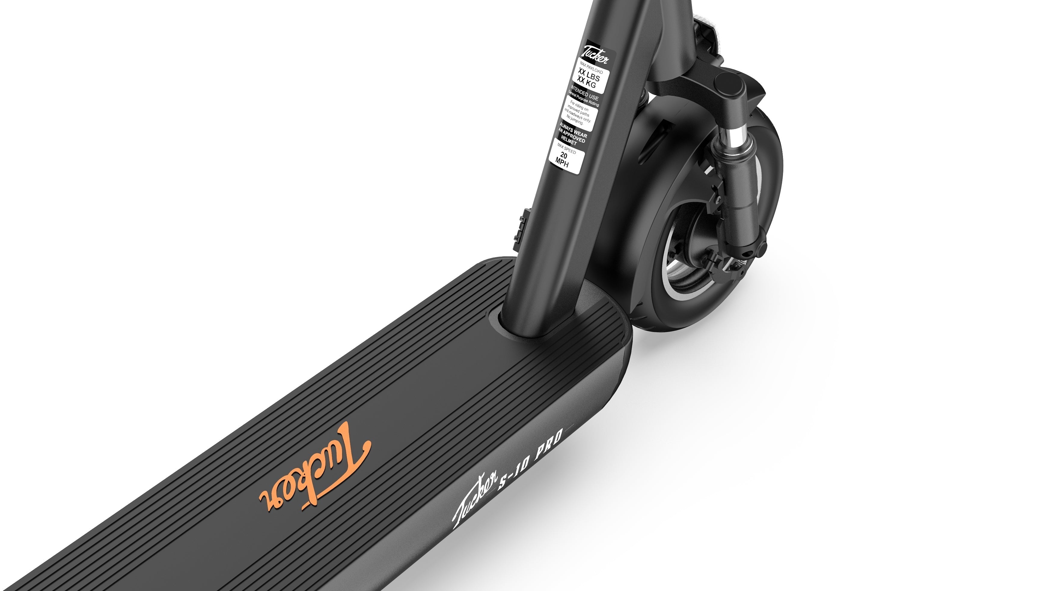 The Tucker S10-PRO uses brand new inner-honeycomb solid tir (rear) and a vibration absorbing pneumatic tire (front). Together with the front suspension fork, S10-PRO can provide the ultimate riding experience.