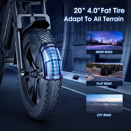 - Excellent Performance: Our e-bike 20 “x4.0 fat tires are designed with a dense center tread pattern to prevent punctures by thorns, glass, and other materials, providing not only excellent ground grip but also excellent stability and traction, perfect for a variety of terrains such as snow, beach, mountain, and city roads. With a maximum weight capacity of 330 pounds, our electric bikes are suitable for adult men and women over 16 years old for daily commuting and outdoor adventures.